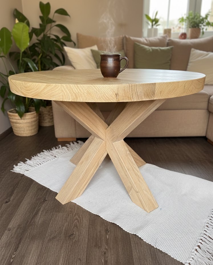 ► Stolik z litego dębu o wyrazistym rysunku słojów